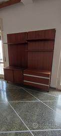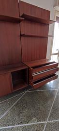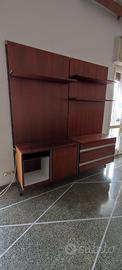 boiserie in legno impiallacciato con rifiniture in alluminio comprende 3 ripiani a vista , 5 cassetti , contenitore bar e altro contenitore