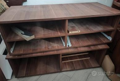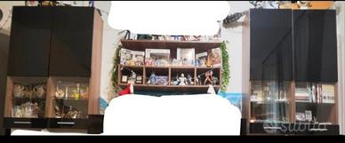 Parete attrezzata nera laccata con luci LED – 200 € trattabili Vendo parete attrezzata composta da 4 pensili neri laccati con piccolo inserto in vetro più mensola centrale, tutti dotati di illuminazione LED integrata. I vari elementi sono collegabili tra loro tramite sistema di connessione, che permette di accendere contemporaneamente le luci LED di tutti i componenti. Misure: 4 pensili neri laccati Larghezza: 120 cm Altezza: 40 cm Profondità: 29/30 cm Mensola centrale Larghezza: 100 cm Altezza: 60 cm Profondità: 25 cm piccoli difetti: -uno dei 4 pensili neri presenta un piccolo graffio -le connessioni led , sono fai da te ( ma possono essere modificate come piû si voglia ) In regalo: 2 basi TV con guide per cassetti (i cassetti però non sono presenti). Prezzo: 200€ trattabili Non spedisco – ritiro a carico dell’acquirente.