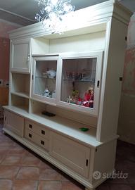 Vendo per cambio arredo, parete attrezzata in legno massello firmata la bottega del rigattiere larghezza cm252, altezza cm 230, profondità 0,60