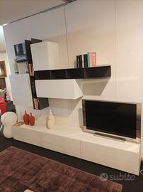 PARETE ATTREZZATA IN LEGNO MASSELLO. NO TRUCCIOLERE. LACCATO BIANCO PORO APERTO LE PARTI IN NERO OPACO SONO IN METALLO. POSSIBILITA' DI TRASPORTO DA CONCORDARE IL PREZZO. PER CHIARIMENTI TELEFONARE SENZA IMPEGNO.
