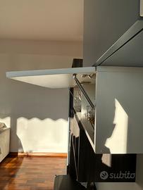 Parete attrezzata in laminato finiture materico e laccato bianco. Lunghezza circa 5mt, altezza 215 cm Vendo per trasloco