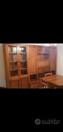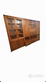 Vendo bellissima parete attrezzata da salotto in noce massello di alta qualità, interamente prodotto artigianale in Toscana (probabilmente anni 90/200, costruzione solida e curata). Composizione completa e molto capiente: Vetrine superiori con ante in vetro (4 ante vetrate, perfette per esporre porcellane, libri, oggetti di valore) Parte centrale con libreria a giorno + vani aperti + zona con ante a specchio. Mobile basso con cassetti (2 cassetti utili) + ante inferiori. Finitura noce calda e naturale, con venature evidenti tipiche del legno massello toscano. Misure: Altezza: circa 220cm Profondità: 45cm Larghezza: 290cm Condizioni: ottimo stato conservativo, usato con cura, nessun danno grave, solo normali segni del tempo (leggeri graffi superficiali su alcune parti, nulla di strutturale). Legno massello vero, non impiallacciato o truciolato – si sente la qualità al tatto e al peso! Ideale per chi cerca un mobile classico elegante, duraturo e di pregio artigianale italiano, da abbinare a stile rustico, country o classico moderno. Già smontato e riposto a piano terra per agevole carico/trasporto. Bulloneria già segnata e suddivisa per riassemblaggio. Info via mail.