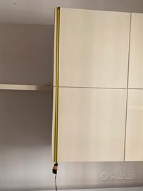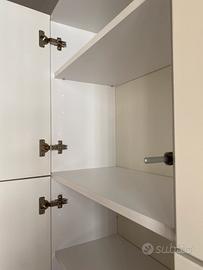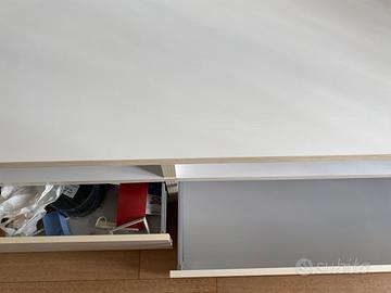 Parete attrezzata bianca Mondoconvenienza, composta da: un mobile basso con due cassettoni 240 cm x 58 cm, altezza 52 cm; una mensola da 120 cm e una credenza bianco lucidi laccato 120x120 con 4 sportelli. Condizioni ottime.