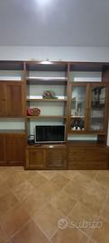 Mobile soggiorno, libreria con vetrinetta, TV. In legno massello tinta noce. Seminuovo vendo causa trasferimento.