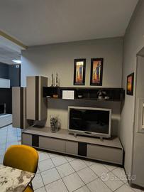 Parete attrezzata di esposizione come foto lunghezza cm305 - colori spatolato/noce brown/vetro bronzo - disponibile in pronta consegna