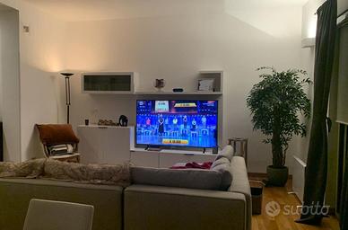 Vendo parete attrezzata moderna in finitura bianco opaco con pannello TV , ideale per soggiorni salone contemporanei/minimal.