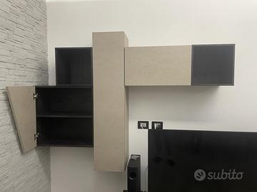 Vendo parete attrezzata moderna in perfette condizioni, completa di moduli sospesi e base TV.