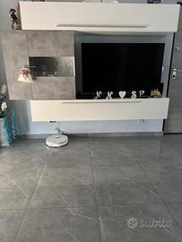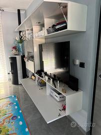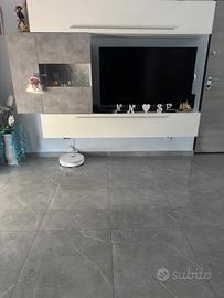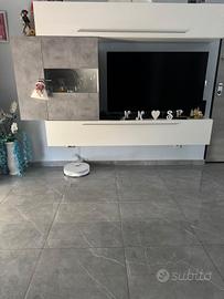 Vendo magnifica parete attrezzata in stile moderno, caratterizzata da un design elegante con finiture in grigio cemento e bianco lucido, offre ampi spazi per organizzare al meglio la TV, libri e oggetti decorativi grazie a vani pratici e moduli con ante. ATTENZIONE: Lo smontaggio e il trasporto sono interamente a carico dell'acquirente.