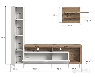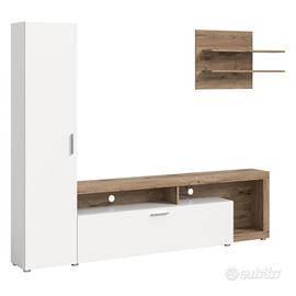 La parete attrezzata moderna Madara, con dimensioni di 218xH178, è un'aggiunta elegante e funzionale al tuo soggiorno. Realizzata in rovere bianco, conferisce un tocco di luminosità e modernità allo spazio. Dotata di scomparti e ripiani, offre ampio spazio per organizzare libri, oggetti decorativi e dispositivi multimediali in modo ordinato. I frontali bianchi aggiungono un elemento di freschezza e raffinatezza al design complessivo. Ideale per creare un'area multimediale completa e stilosa, perfetta per momenti di intrattenimento e relax in famiglia o con gli amici. La parete attrezzata Madara unisce estetica e funzionalità , diventando il cuore del tuo soggiorno