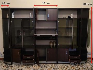 Il mobile ha vetrine fumé, cassetti, ripiani e vani chiusi, quindi è davvero capiente e comodo sia per un soggiorno che per una taverna o uno studio. Non ha danni evidenti. Lo vendo solo per cambio arredamento.