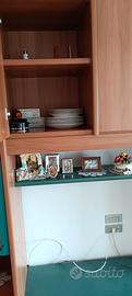 Vendo parete attrezzata in ottime condizioni. Lunga 335 cm, larga 46 cm, alta 250 cm. Non presenta difetti degni di vota. Si trova al 4 piano con ascensore. Smontaggio e trasporto a carico dell' acquirente