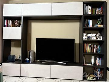 Composta da vani chiusi, libreria laterale e base TV spaziosa.