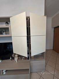 Parete attrezzata soggiorno bianco lucido e legno noce chiaro – Ottime condizioni