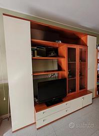 Parete attrezzata completa di vetrina, esclusi oggetti a contorno visibili in foto, in ottime condizioni.