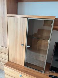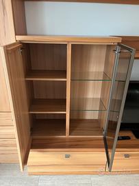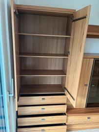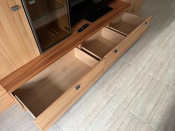 Vendo elegante parete attrezzata in legno completa, ideale per soggiorno o sala TV della marca Varianta Dimensioni: •Lunghezza totale: 4 metri •Altezza colonne laterali: 220 cm •Profondità colonne: 40 cm •Parte centrale: •Altezza: 200 cm •Profondità: 60 cm Composta da: •2 colonne laterali con ante e cassetti •Mobile basso con cassettoni •Vetrinetta con anta in vetro •Ripiani e spazio TV centrale Design moderno e funzionale, molto capiente e in ottime condizioni. Ideale per organizzare TV, libri e oggetti. Smontaggio e ritiro a carico dell’acquirente