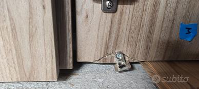Parete attrezzata per soggiorno. Struttura molto solida. Comoda grazie alle pratiche aperture "push" delle ante e alle chiusure ammortizzate. Graziosa vetrina trasparente con telaio in acciaio inox. Colori: Noce Gold e Malta. Unica pecca: incastro alla base danneggiato in fase di montaggio dagli installatori. Non compromette comunque la funzionalità. Parte nascosta e non visibile alla vista una volta assemblata la parete. Altezza 195cm, lunghezza 273cm. Spazio per televisore: 147,5x86. Vendita con formula visto e piaciuto.
