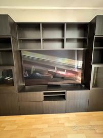 Mobili per salotto che coprono tutta la parete, nella sezione centale ci sta tranquillamente una TV da 75 pollici. Per altre foto e/o info scrivete senza impegno.