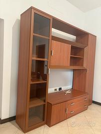 Parete attrezzata soggiorno in ottime condizioni – legno con vetrina
