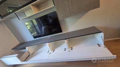 Causa trasloco, vendo bellissima Parete Attrezzata - Mobile TV acquistata da Ricci Casa al prezzo di 1900 (attualmente.in vendita a 1887, guarda ultome foto). OTTIME CONDIZIONI, vendo a prezzo di OCCASIONE, già smontata e imballata in tutte le sue parti, pronta per il trasporto. Dimensioni Larghezza 320 cm - Altezza 210 cm (totale, modulabile in base all'altezza scelta di aggancio parte superiore) - Profondità