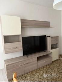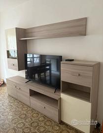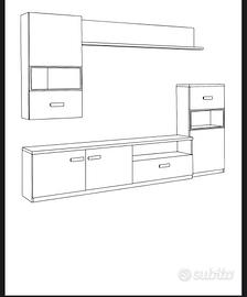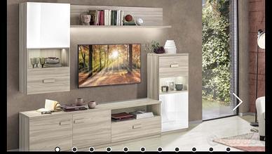 Comprende una base TV, un pensile, una mensola e una madia alta.