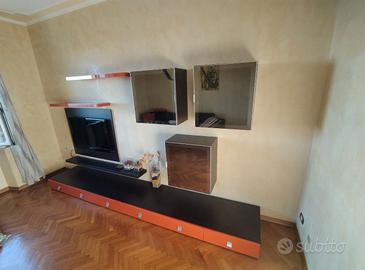 Vendesi parete attrezzata componibile Giessegi (Living), di alta qualità e design contemporaneo. Il mobile è caratterizzato da un elegante contrasto tra la struttura in legno scuro (finitura wengé/teak) e i frontali dei cassettoni in laccato arancione lucido. Caratteristiche principali: I pezzi sono indipendenti e possono essere disposti sulla parete a proprio piacimento. Composta da una lunga pedana con cassettoni ad alto scorrimento e maniglie satinate di design. Include moduli sospesi con ante in vetro temperato Vitemper (finitura fumé/specchiata) e mensole coordinate. Struttura solida e finiture laccate resistenti. Le cassettiere sono due (da tre cassetti ciascuna). Il mobile è in ottime condizioni generali, ben mantenuto. Le cerniere e le guide dei cassetti sono perfettamente funzionanti. Misure indicative: Cassettiera: 180x60x20 cm (mensola lunga della stessa lunghezza). Lunghezza Mensole arancioni e lato TV: 120 cm. Note: Smontaggio e trasporto a carico dell'acquirente. Disponibile per visione. Prezzo trattabile dopo visione.