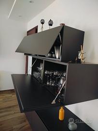 Parete attrezzata sospesa in ottime condizioni. Due pezzi sospesi più due pezzi che compongono la base.
