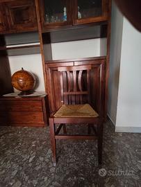 Parete attrezzata in legno massello Lung2.86 larg 38 alt 2.32cm con due cassetti più tavolo 1.40x80 allungabile 40+40cm totale 2.20cm Con sei sedie impagliate