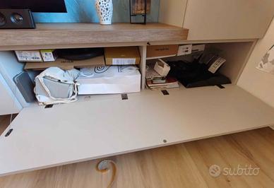 Vendo mobile soggiorno porta TV della Tomasella quindi prodotto di ottima qualità. Lunghezza totale 2900 altezza totale 2200. La colonna di destra ha un altezza di 1650 profondo 400. La panca è lunga 2340 con profondità 450 , i due pensili inferiori uno è lungo 1080 l'altro 1440 entrambi profondi 400.All'interno i pensili hanno i ripiani in vetro. Per maggiori informazioni 3299418039