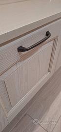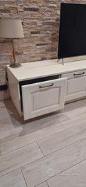 composta da un ripiano con sotto 4 cassettoni molto capienti e da un mobile scomponibile a due ante con all'interno tre scomparti divisi da due mensole.