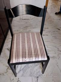 ✔️ 6 sedie abbinate, seduta imbottita rivestita in tessuto plastificato rigato, come nuove.