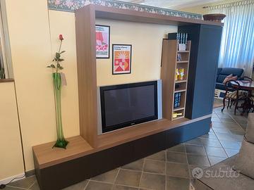 Proponiamo in vendita splendido componibile a parete color titanio/noce. L.300cm P.43,5 H.194cm (Eventualmente eliminando la base centrale può diventare 240cm) Prezzo di listino: 2999,00€ Prezzo scontato: 1699,00€ Tutti gli elementi sono ordinabili in altre colorazioni. Vieni a visionare questo e gli altri prodotti nel nostro punto vendita, a Trofarello (TO), in Via Torino 149/A. I nostri prodotti sono NUOVI. Disponibile trasporto e montaggio. Per altre informazioni non esitate a contattarci. 0116490022
