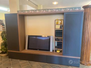 Proponiamo in vendita splendida parete a misura bicolor in color Titanio (antine e cassa) e Style Wood (piano e mensole). Il componibile è personalizzabile e specchiabile ed inoltre i pensili hanno la possibilità di essere appesi.