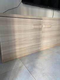 Parete da salotto composta da base h 56 cm l 2,10 m larghezza 47 cm; mensola sospesa h 32 cm l 1,80 m.