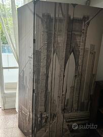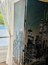 Parete divisoria pieghevole con doppia prospettiva, ottimo stato, adattabile in qualsiasi ambiente e misura, vendo per inutilizzo. Volendo altra parete divisoria ad € 20 di colore grigio pieghevole e adattabile dappertutto.