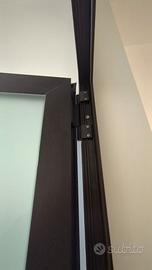 Parete divisoria da interni in vetro e alluminio/nero opaco, a tutta altezza, con porta (larghezza 80cm.).e serratura.