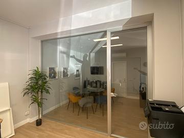 Causa trasferimento vendo parete divisoria in vetro con porta battente. Ideale per uffici, negozi, agenzia immobiliare, studio professionale, palestra ecc Lunghezza 3,50m altezza 2,80m Struttura in alluminio con doppi vetri di sicurezza a tutta altezza. Porta con 4 cerniere e serratura con doppie chiavi. Attualmente installata in ufficio al piano terra a Roma zona villa gordiani. Eventualmente ho gia contattato un artigiano specializzato disponibile per trasporto e montaggio (preventivo a parte) Fatturabile IVA compresa Pagata 2500 euro circa due anni fa pertanto si presenta in ottime condizioni assolutamente pari al nuovo Per qualsiasi informazione o supporto contattatemi