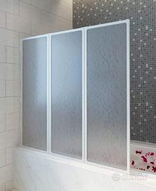 Vendo parete da vasca da bagno a 3 pannelli (chiusura a soffietto) per convertire vasca da bagno in doccia senza interventi edili/idraulici, in metallo bianco e plexiglass opaco, non trasparente, di facilissima manutenzione e leggero. È usata ed ha una piccola imperfezione (=per staccarla dal muro piastrellato non abbiamo potuto essere troppo delicati e si è aperto uno dei buchetti da dove era inserito uno dei tasselli a muro), però basta inserire il tassello un po' più sopra o un po' più sotto e funziona bene lo stesso. È in buono stato ma da pulire. Anche le plastiche antigoccia sono piuttosto nuove, non secche, ma da ripulire. A Catabbio. NON SPEDISCO.