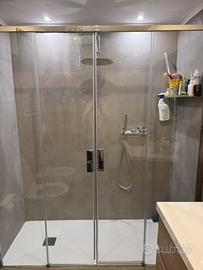 Una delle ante si è scollata dal supporto di scorrimento in alluminio e non è riparabile. Il costo della sola anta è la metà del costo complessivo della parete. Se interessati a struttura, pareti fisse o anta “sana” contattatemi.