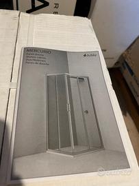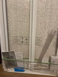 Porta a soffietto per vano doccia, nuova e ancora imballata, vetro opaco con effetto gocce.