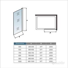 • Cristallo temperato trasparente da 8 mm con trattamento anticalcare