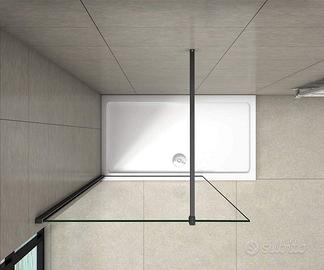 Parete doccia Walk-In 70x200 cm, telaio nero opaco, vetro temperato 8 mm easy clean, con barra stabilizzatrice tagliabile fino a 90 cm.