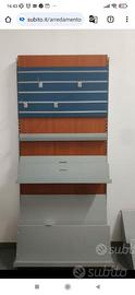 Parete edicola con scaffali componibili e dotata di ganci per buste regalo. In ottime condizioni. 2 pezzi disponibili. 100 euro per parete. Prezzo leggermente trattabile