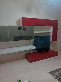vendo bellissima parete attrezzata colore bordeaux e bianca con 3 sportelli a specchio lunga 3.35 metri