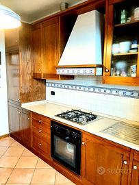 Ottimo affare: cucina completa artigianale in legno (castagno), ottime condizioni generali, con frigorifero, lavastoviglie, piano cottura e forno tutto perfettamente funzionante, il piano ed il lavabo in acciaio sono quasi nuovi. La misura in linea è di m. 3,45-3,46.