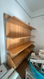 Parete Retrobanco, adatta per Macelleria salumeria è composta da cinque moduli da 1 m ciascuno con due postazioni per affettatrice più dei moduli porta Pane
