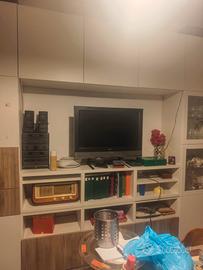 Parete attrezzata con vetrina, 3 cassetti tutto (compreso le ante) con apertura a pressione. Completamente modulabile per personalizzare la composizione.