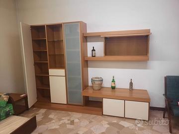 Parete soggiorno Folding noce e laccato con vetrine satinate e anta basculante Piani Folding Dimensioni Larghezza cm 310 altezza cm 225 Profondita top e base folding cm 60 colonne e basculanti cm 41
