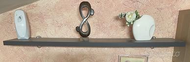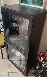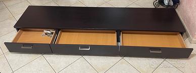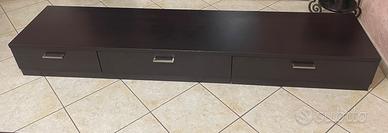 Parete attrezzata componibile con vetrina in legno color wenge e beige, tenuta benissimo. Mobile TV lunghezza 243 cm, profondità 54,5 cm, altezza 26 cm. (3 Cassetti 91 cm, 91 cm, 61 cm) Vetrina 61*128*37 cm. 2 Mensole 182*26 cm e 120*26 cm. Mobile beige con ante 121,5*63*37 cm. Parzialmente smontato il mobile TV, comunque resta intero il panello grande 243*54,5 cm. Ritiro a mano.