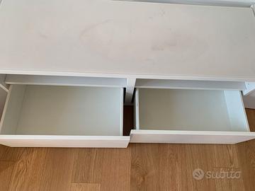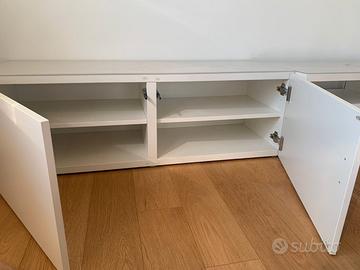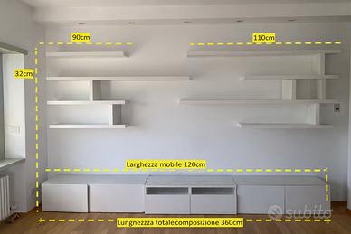 Vendo elegante parete soggiorno IKEA completa, in ottime condizioni, per trasloco. Soluzione moderna e minimal, perfetta per arredare il living con stile e funzionalità. ✨ Composizione dal design pulito con mensole LACK sospese e mobili bassi, ideale per TV, libri e oggetti decorativi. 📐 Dimensioni: Lunghezza totale composizione: 360 cm Moduli bassi (ante): 120 cm ciascuno 🔹 Composizione: Diverse mensole IKEA LACK bianche, robuste e dal look moderno Mobili bassi contenitori con ante + vano centrale aperto (perfetto per decoder/console) Struttura modulare: facilmente adattabile ad altri spazi 💡 Punti di forza: Stile moderno e minimale Colore bianco, luminoso e versatile Ottima capacità contenitiva Ideale per TV e zona living completa Tutto coordinato IKEA 📦 Condizioni: tenuto molto bene, nessun difetto evidente 🚚 Facilissimo da smontare