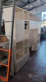 Parete soggiorno libreria modulare in perfette condizioni color bianco con venature legno frassino misure 218x290 "La Bottega del Risparmio" Uta Via Vivaldi